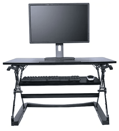 Smart space-saving design stays within your desk space and raises vertically within the same plane; no having to step back and out when in the raised position