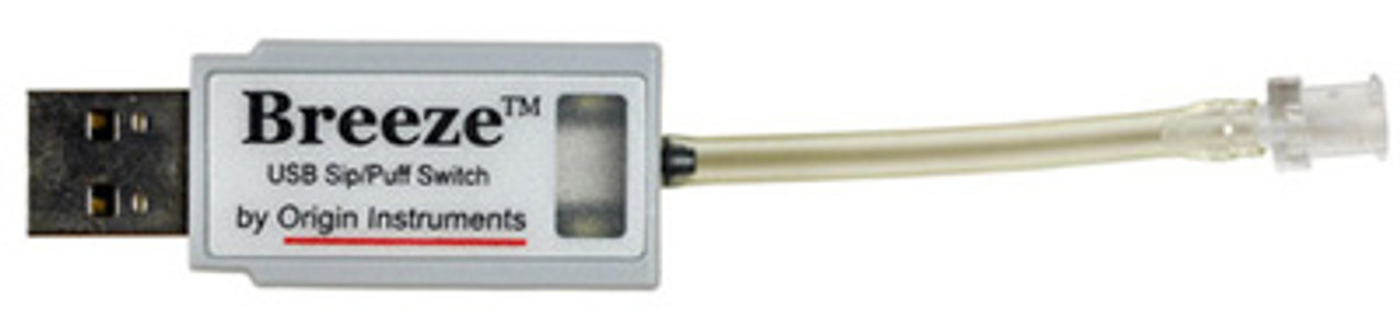 Breeze Sip/Puff sensor with an integrated USB computer interface. Use Breeze's integrated DIP switch to tell it what events your application needs, plug it in, attach a pneumatic tube, and your application is ready for access.