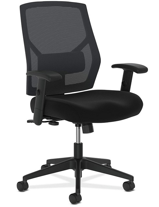 This HON Crio high-back task chair gives you advanced features at a compelling price. The breathable mesh back delivers cool comfort while giving the chair a cool look, and the adjustable lumbar support enhances lower back comfort. Height- and width-adjustable arms put the support right where you need it, while the center-tilt recline control allows you to find the most comfortable posture. Simple, clean design combined with customizable comfort make this a great value. Mesh and seat fabric colors are Black.