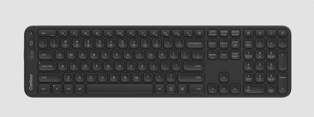 Balance Full-Size blends ergonomic design with precision typing for long workdays. Its low profile and negative tilt align your hands, wrists, and shoulders in a natural position, reducing strain and maximizing comfort. Pair this Windows layout keyboard with Contour Touch for the most centered, pain-free setup. Finely tuned scissor switches and softly dished keycaps make every keystroke crisp, accurate, and effortless, so you can stay productive without the pain.