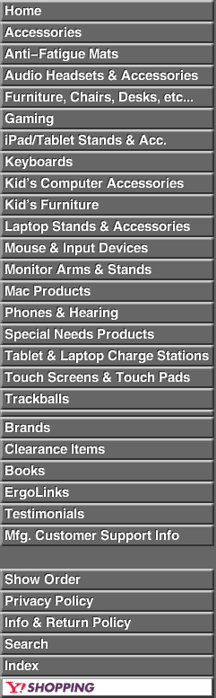 We do not provide any warranty beyond that stated by the original manufacturer nor do we make any claims that any product supplied by us will necessarily relieve or reduce a particular problem that you are experiencing. Products supplied by Ergoguys are not health care products or medical aids and are not offered as such.