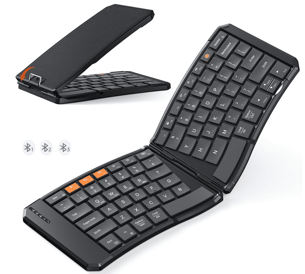 【BLUETOOTH MULTI-DEVICE】K9880 Bluetooth Keyboard supports simultaneous connection to 3 devices with one-click switching between iPads, phones, tablets and laptops. Compatible with iOS/Android/Windows/macOS, it simplifies mobile work for business trips—one keyboard fits most devices.