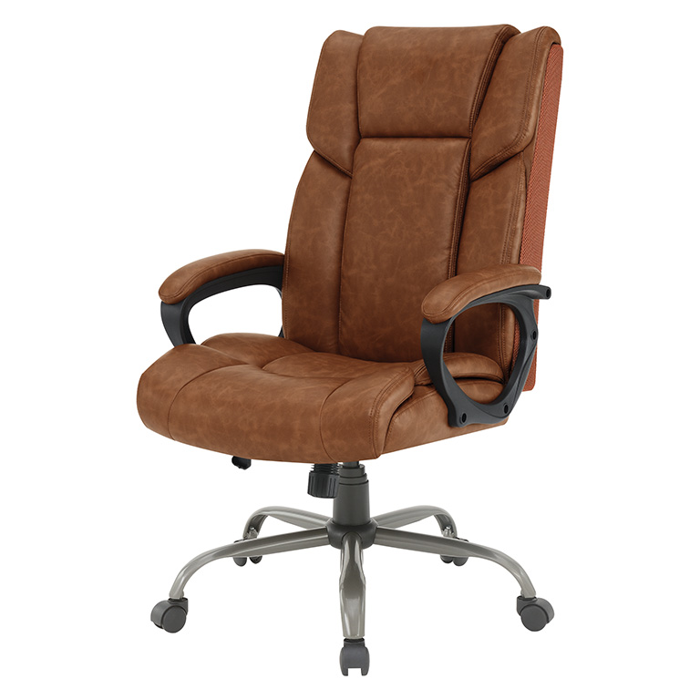 Upgrade your workspace with this High-Back Executive Office Chair engineered for comfort, support, and long-lasting performance. A thickly padded, contoured seat and back deliver ergonomic lumbar support, while one-touch height adjustment and adjustable tilt controls allow you to tailor the chair to your seating preference. PU padded loop arms provide relaxed upper-body comfort, and a titanium-finish metal base with dual-wheel carpet casters ensures reliable strength and effortless movement across carpeted surfaces. Ideal for executive offices, conference rooms, and professional workplace environments.